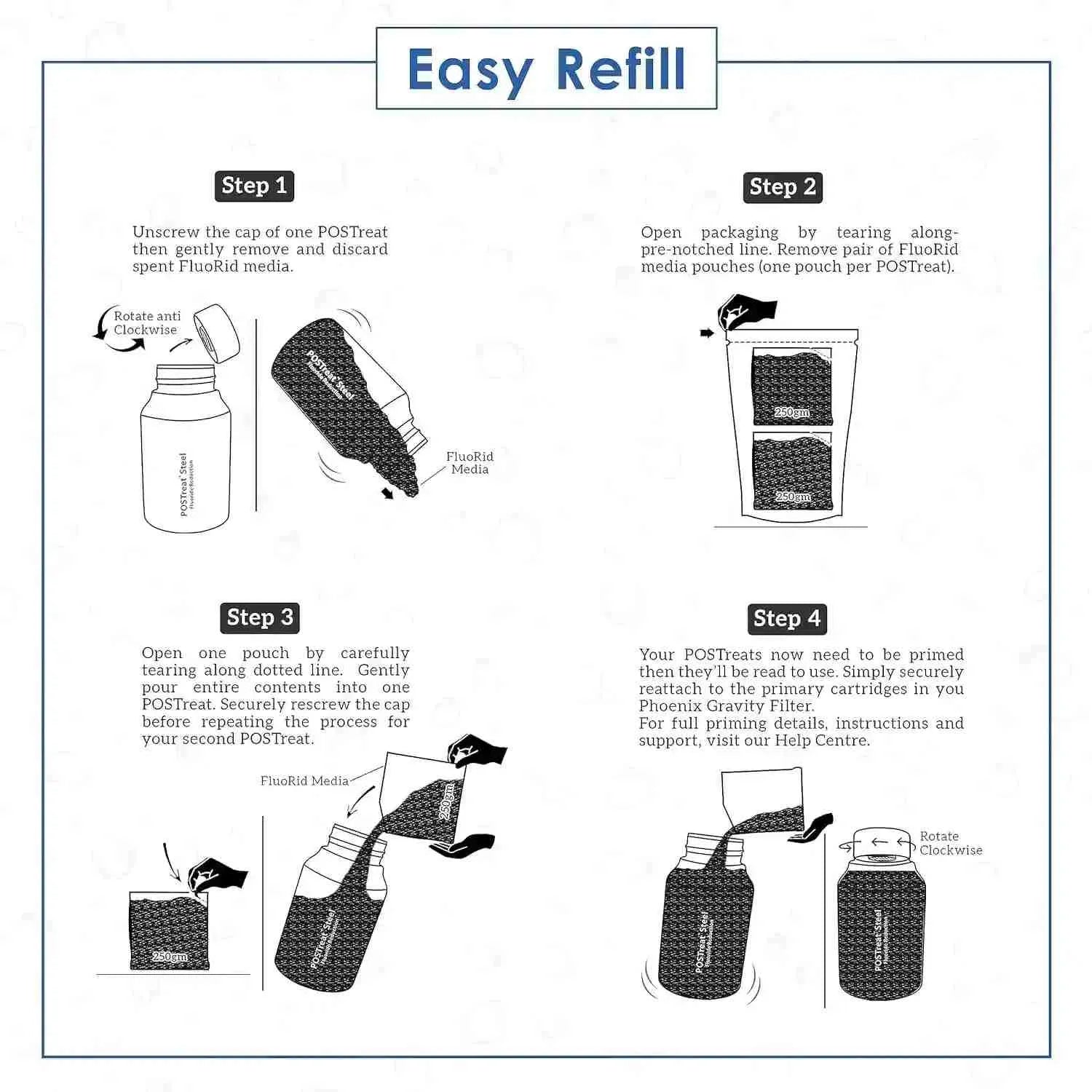 - The uniquely replaceable FluoRid Media sachets last for 4 months.